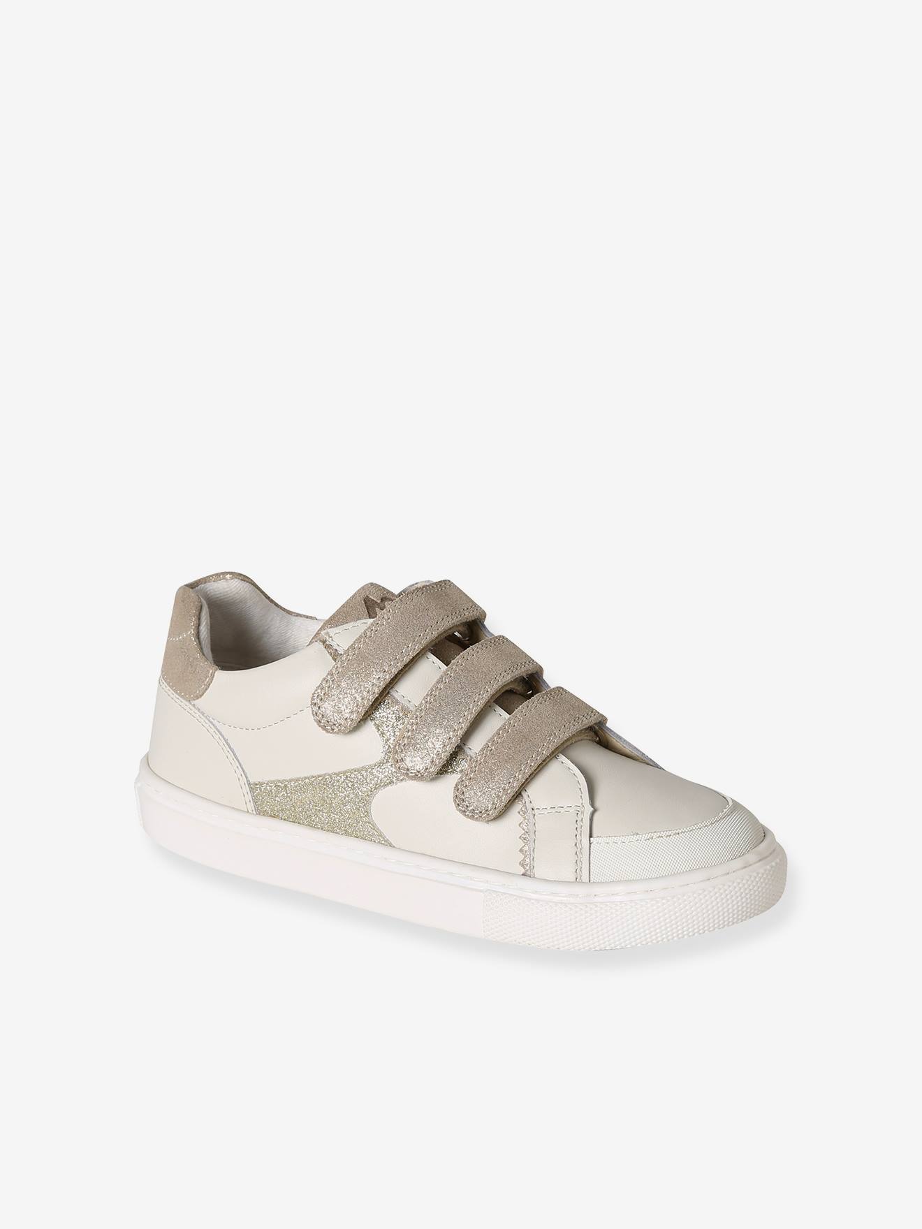 Kinder Leder-Sneakers mit Klett, zweifarbig weiß Gr. 34 von vertbaudet