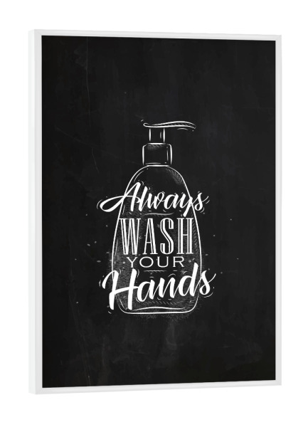 Poster mit Rahmen schwarz "Soap dispenser graphic chalk" artboxONE - Typografie,Schwarzweiß - Soap,Lettering,Chalk