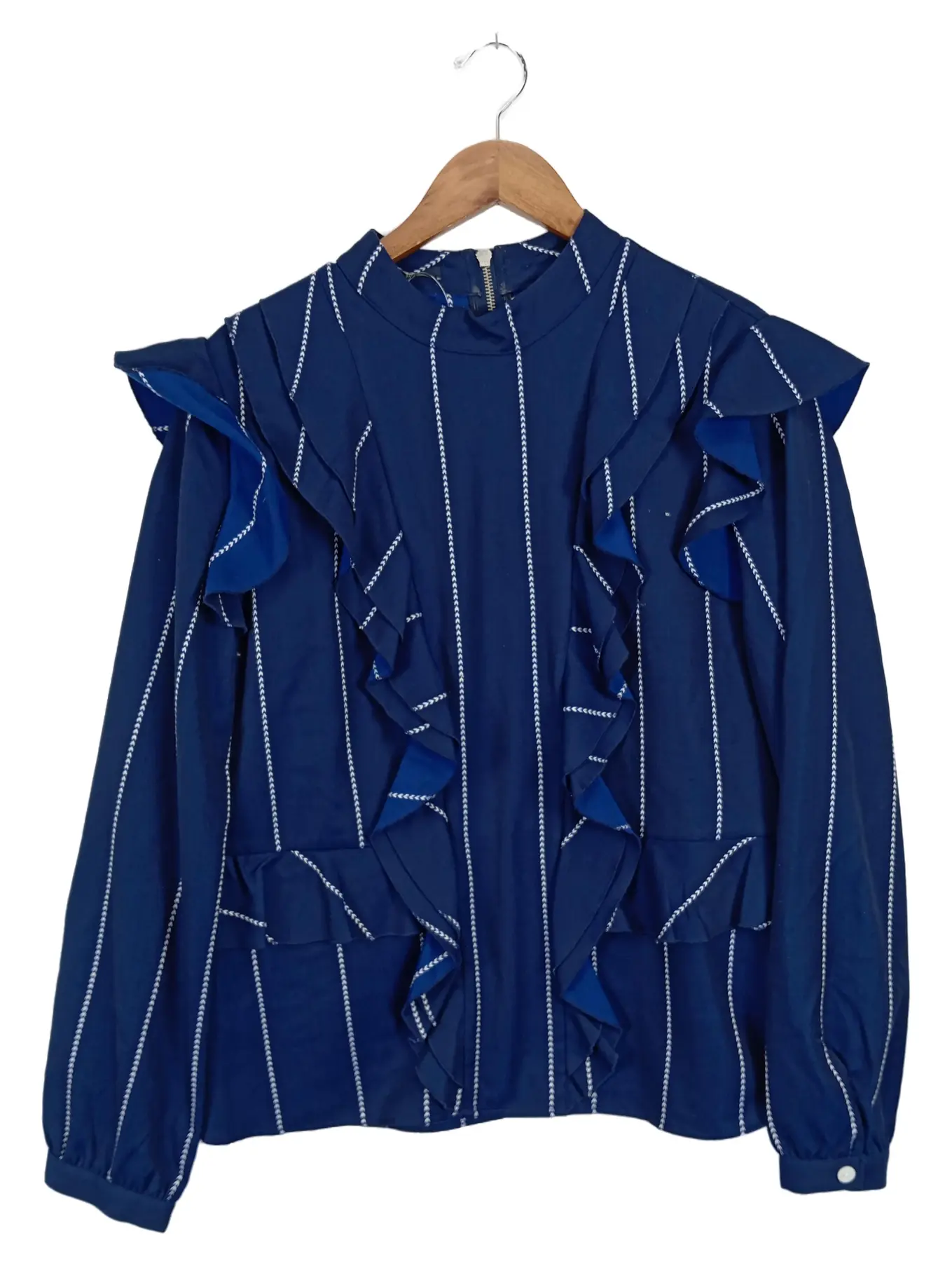 SCOTCH & SODA Damen Bluse Rüschen Streifen Gr. 42 XL Blau Feminin