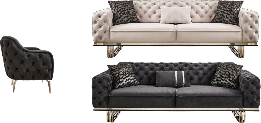 Villa Möbel Sofa Set Sinn Anthrazit-Creme Stellvariante:2+2+1 Relax- und Bettfunktion, pflegeleichter Mikrofaser Samtstoff