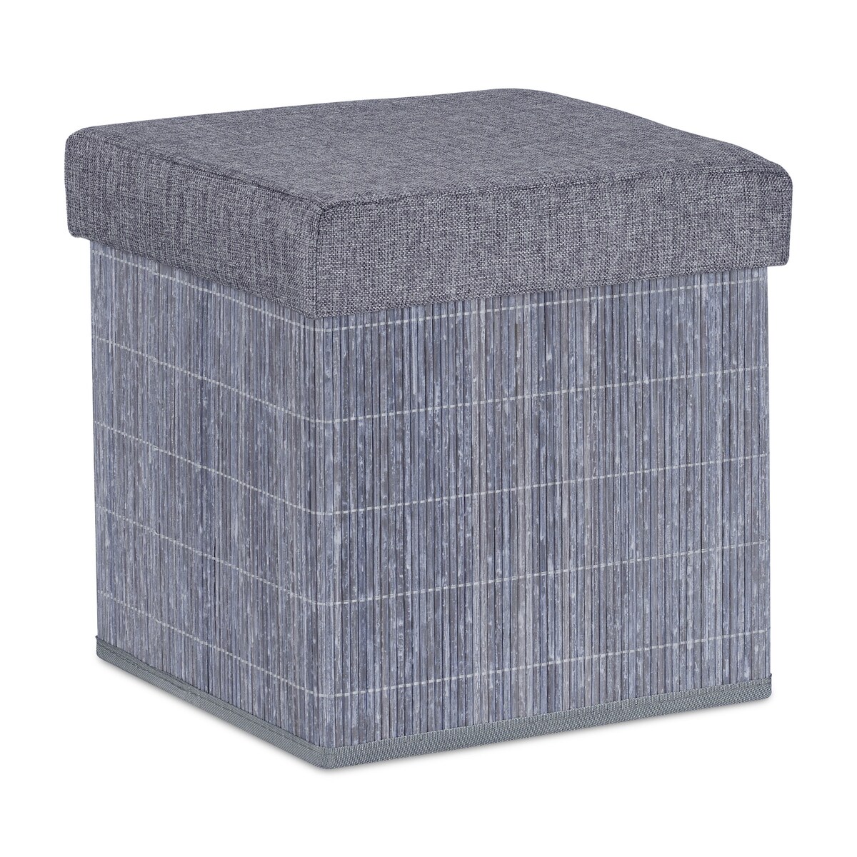 Relaxdays Sitzhocker mit Stauraum, gepolstert, faltbar, Bambus, Stoff, HBT: 36 x 35 x 35 cm, Sofahocker mit Deckel, grau