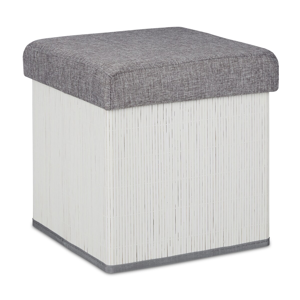 Relaxdays Sitzhocker mit Stauraum, gepolstert, faltbar, Bambus, Stoff, HxBxT: 36 x 35 x 35 cm, Sofahocker, weiß/grau