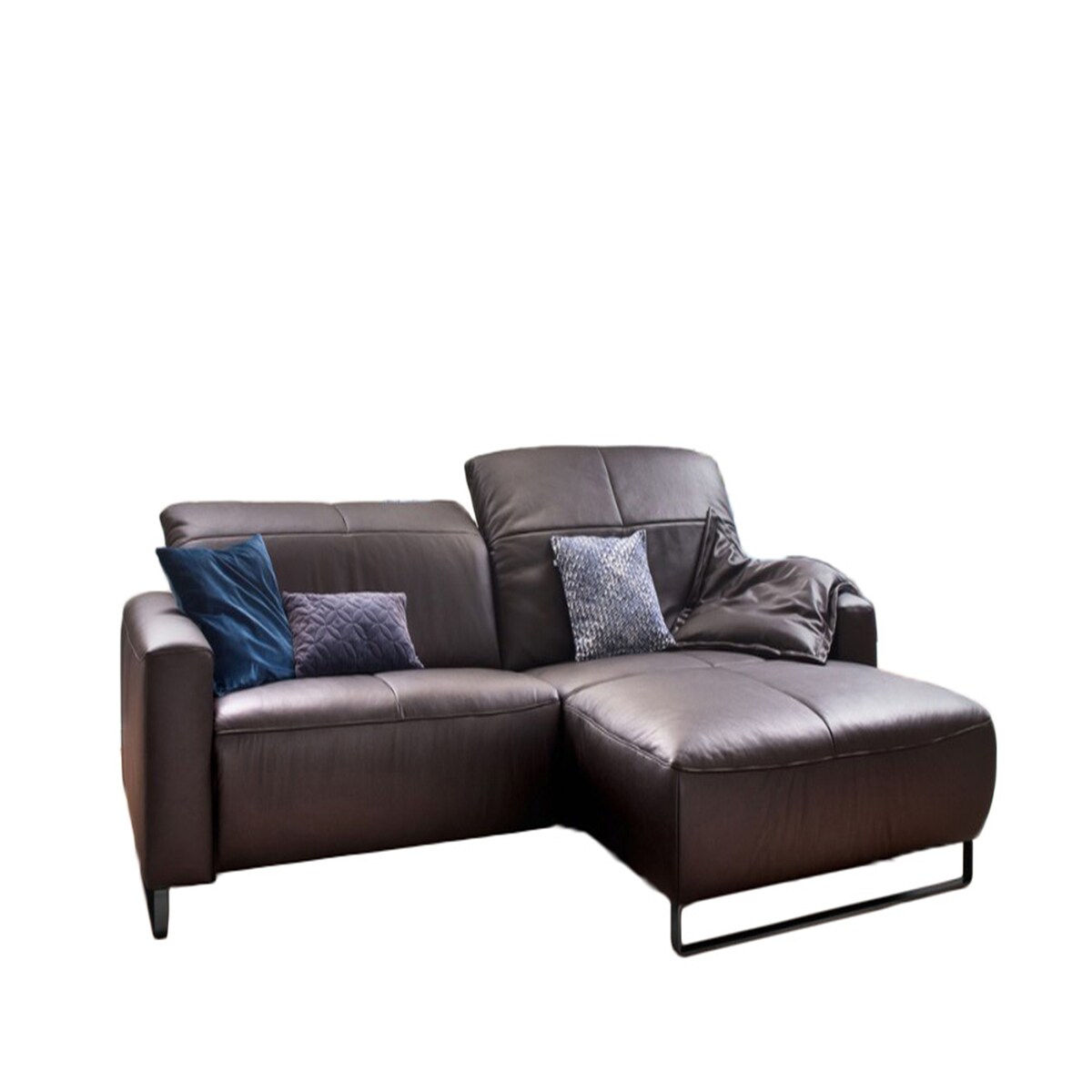 KAWOLA Sofa YORK Leder Life-line chocolate Rec rechts Fuß Metall schwarz mit Sitztiefenverstellung