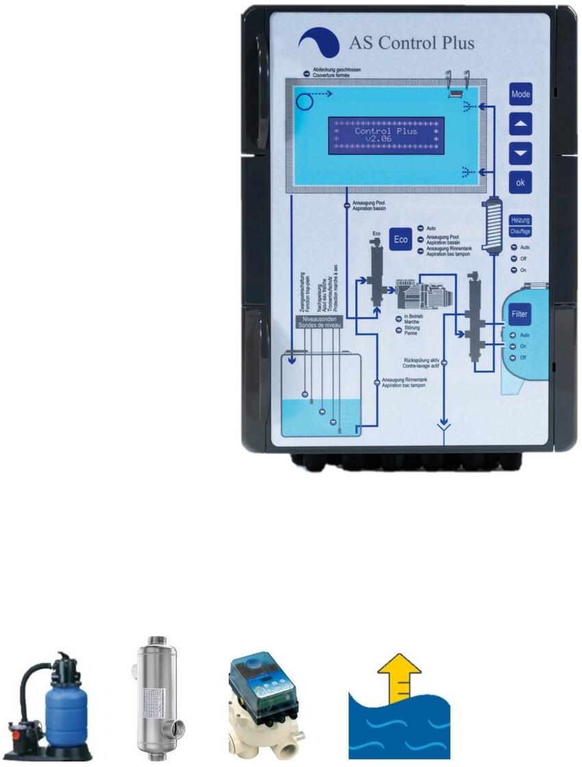 Aqua Solar Control Plus Elektro-automatische Steuerung Filteranlage, Wärmetauscher, Rückspülung, Niveauregulierung für Infinity-Überlaufbecken mit Bes