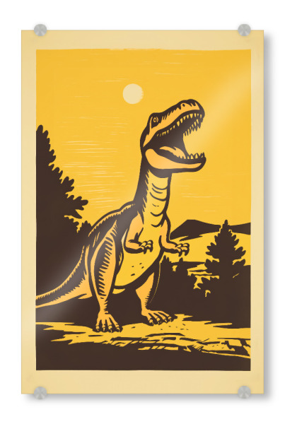 Acrylglasbild "Retro-Dino" artboxONE - Tiere,Comic - Kunst,Hell,Dino,Dinosaurier,Glücklich,Minimal,Malerei,Retro,Einfach,Sonne,Trex,Gelb