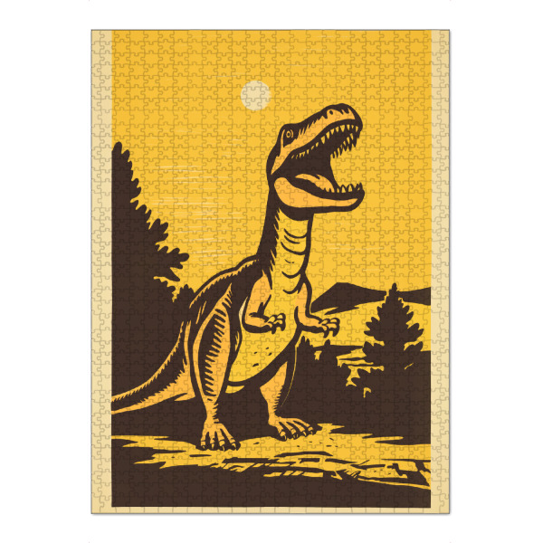 artboxONE Puzzle "Retro-Dino" artboxONE - Tiere,Comic - Kunst,Hell,Dino,Dinosaurier,Glücklich,Minimal,Malerei,Retro,Einfach,Sonne,Trex,Gelb