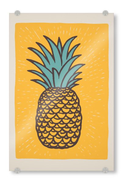 Acrylglasbild "Retro-Ananas" artboxONE - Comic,Abstrakt - Ananas,Kunst,Hell,Obst,Glücklich,Minimal,Malerei,Retro,Siebdruck,Einfach,Sonne,Gelb