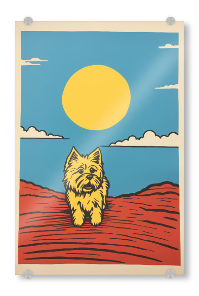 Acrylglasbild "Retro-Terrier" artboxONE - Tiere,Comic - Kunst,Hell,Hund,Glücklich,Minimal,Malerei,Retro,Einfach,Sonne,Terrier,Gelb,Yorkshire