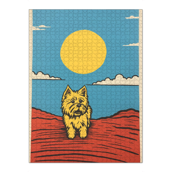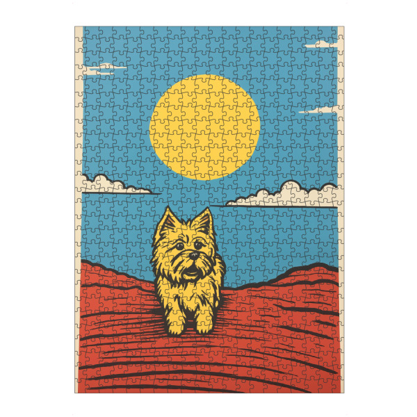 artboxONE Puzzle "Retro-Terrier" artboxONE - Tiere,Comic - Kunst,Hell,Hund,Glücklich,Minimal,Malerei,Retro,Einfach,Sonne,Terrier,Gelb,Yorkshire