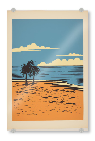 Acrylglasbild "Retro-Strand" artboxONE - Comic,Reise / Strand und Meer - Kunst,Strand,Minimal,Ozean,Malerei,Palme,Retro,Einfache,Sonne,Baum
