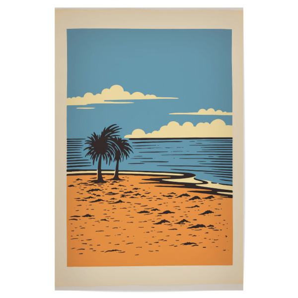 Poster 30x20 cm "Retro-Strand" artboxONE - Comic,Reise / Strand und Meer - Kunst,Strand,Minimal,Ozean,Malerei,Palme,Retro,Einfache,Sonne,Baum