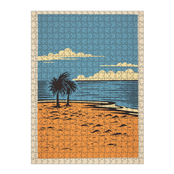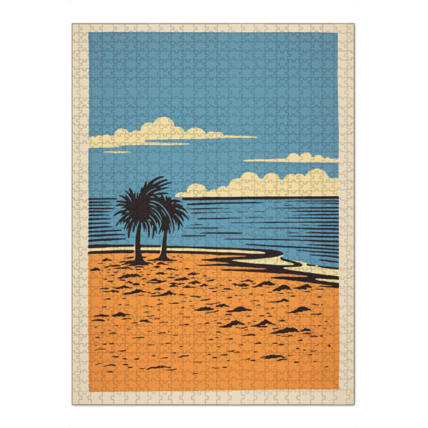 artboxONE Puzzle "Retro-Strand" artboxONE - Comic,Reise / Strand und Meer - Kunst,Strand,Minimal,Ozean,Malerei,Palme,Retro,Einfache,Sonne,Baum