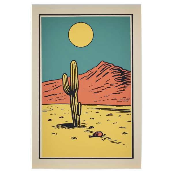 Poster "Siebdruck-Retro-Wüste" artboxONE - Natur,Comic - Kunst,Hell,Kalifornien,Wüste,Glücklich,Minimal,Malerei,Retro,Siebdruck,Einfach,Sonne,Gelb
