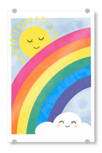 Acrylglasbild "Regenbogen und Sonnenschein" artboxONE - Natur,Für Kinder,Comic - Sonne,Wolken,Regenbogen,Farben,Süß,Spaß,Kinder,Kinderzimmer,Wandkunst
