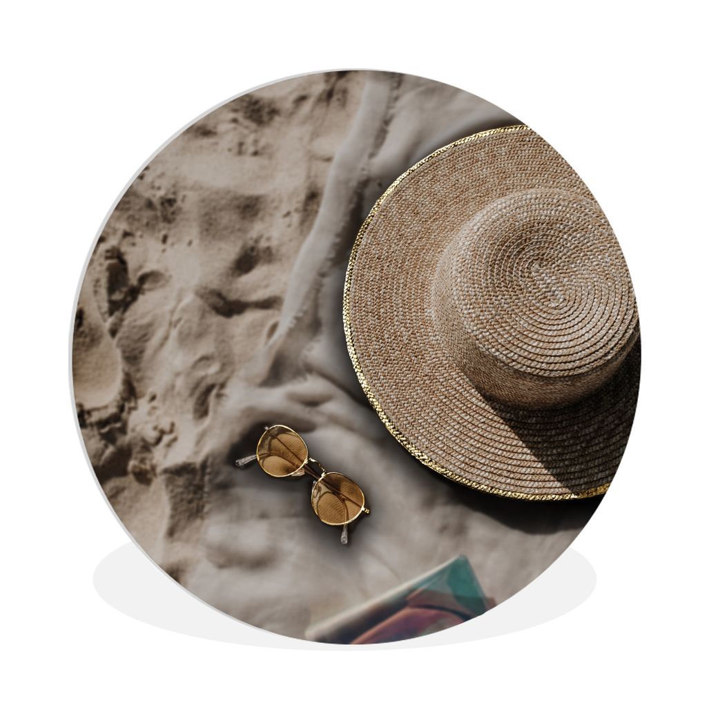 MuchoWow Rundes Wandbild - Runde Bilder Sand - Sonnenbrille - Sommer Ø 90 cm Kreis Wanddekoration Kunststoff - Wandkreis - Wandschmuck - Wand-Kr...