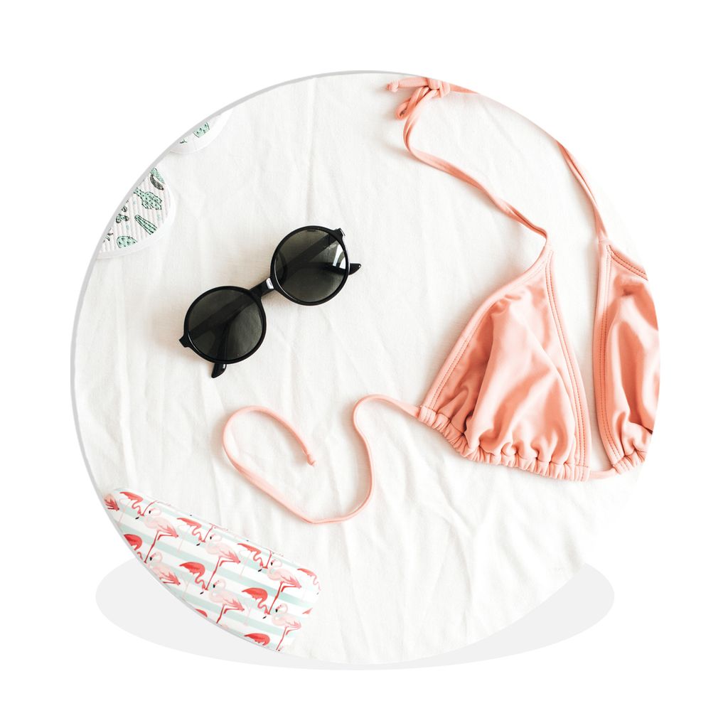 MuchoWow Rundes Wandbild - Runde Bilder Sommer - Bikini - Sonnenbrille Ø 90 cm Kreis Wanddekoration Kunststoff - Wandkreis - Wandschmuck - Wand-...