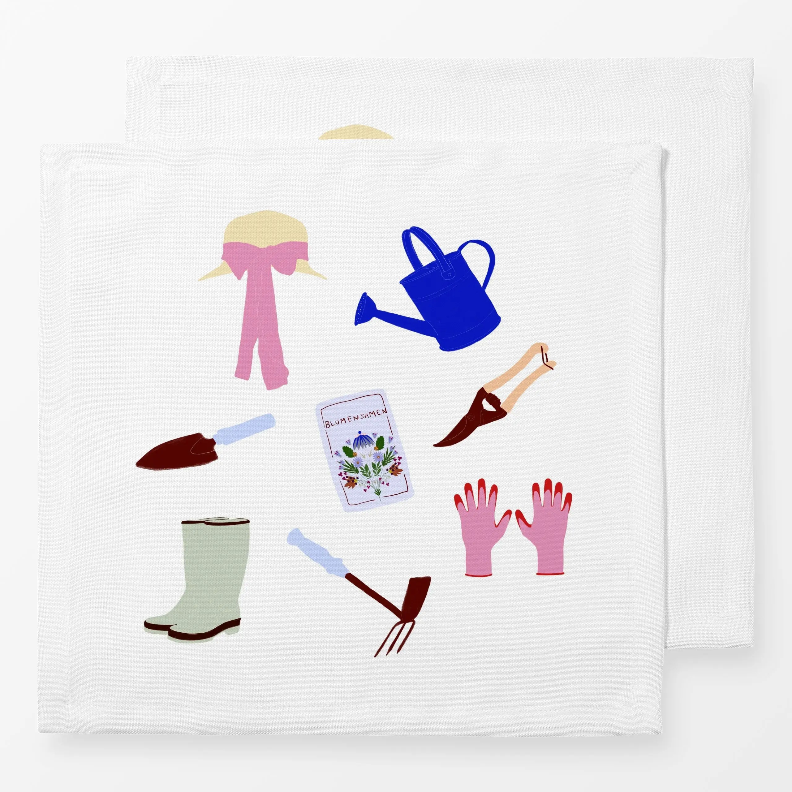 Servietten Garten Werkzeuge - Frühling, Aktion - von „Sophie Augustin Illustration"; Garten, Sonnenhut, Fruehling, Gartendek...