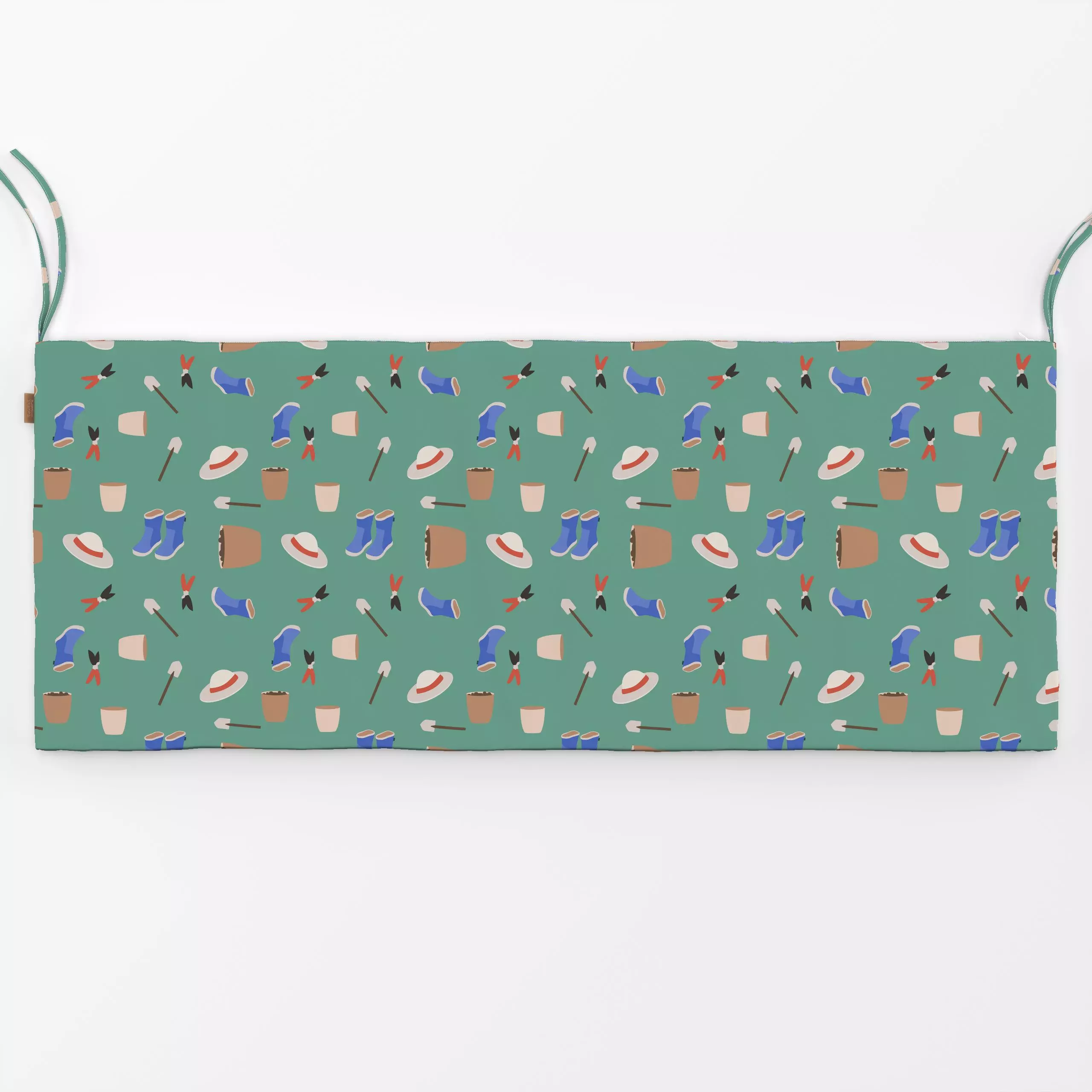 Bankauflage Gartenwerkzeug grün - Frühling - von „Jana Moßmann"; Garten, Sonnenhut, spring, werkzeug, Gummistiefel, Schreber...