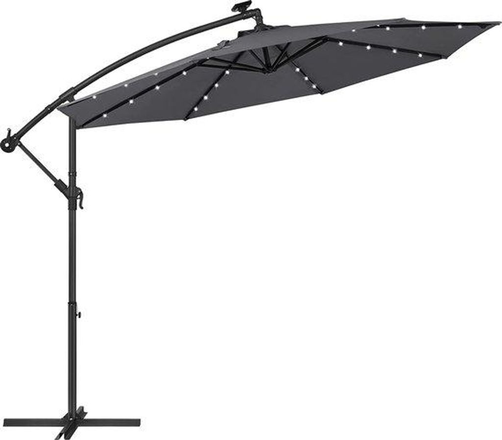 TolleTour Sonnenschirm mit LED Beleuchtung Ampelschirm 300 cm Garten Schirm Pavillon - Grau