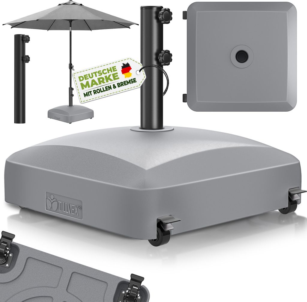tillvex Sonnenschirmständer PAVERA mit Rollen & Bremsen Grau | Schirmständer befüllbar 37 Liter / 56 kg | Schirmgewicht Sonnenschirm & Marktsc...