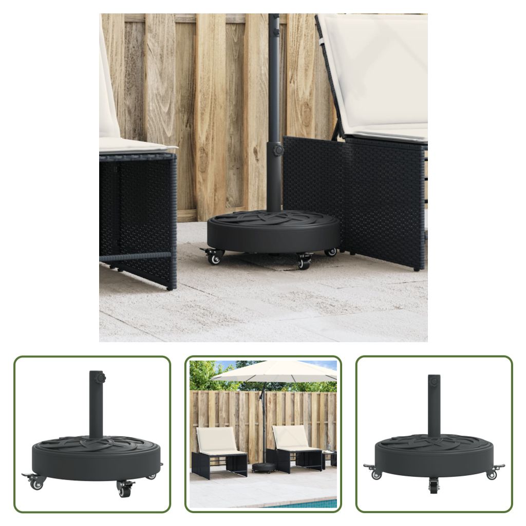 Sonnenschirmständer 25 kg Rund mit Rollen und Griffen – Schirmständer Harz Ø38/48 mm | Ø53 cm | Schwarz