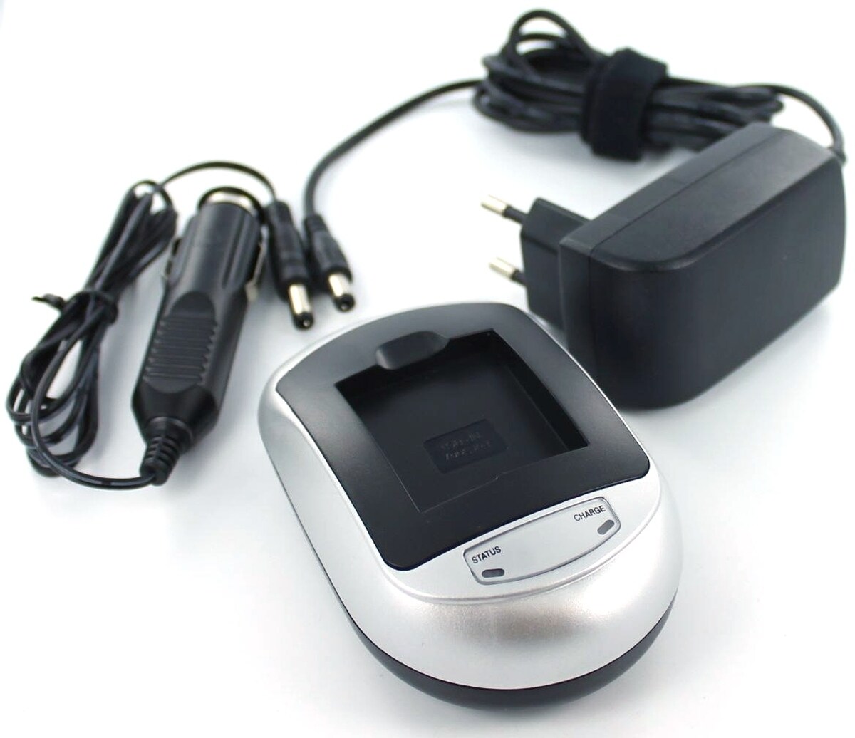vhbw Ladegerät kompatibel mit Sony Cybershot DSC-HX400V, DSC-HX50, DSC-HX50V, DSC-HX400 Kamera Camcorder - Ladeschale, Kfz-Adapter Ladeanzeige