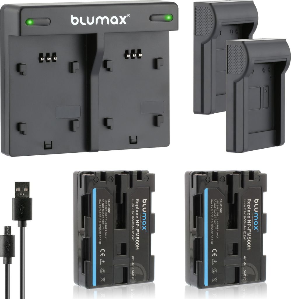 2x Blumax Akku | für Sony NP-FM500H Digitalkamera | Kapazität 1650mAh |Spannung 7,2Volt | Video- und Kamerazubehör
