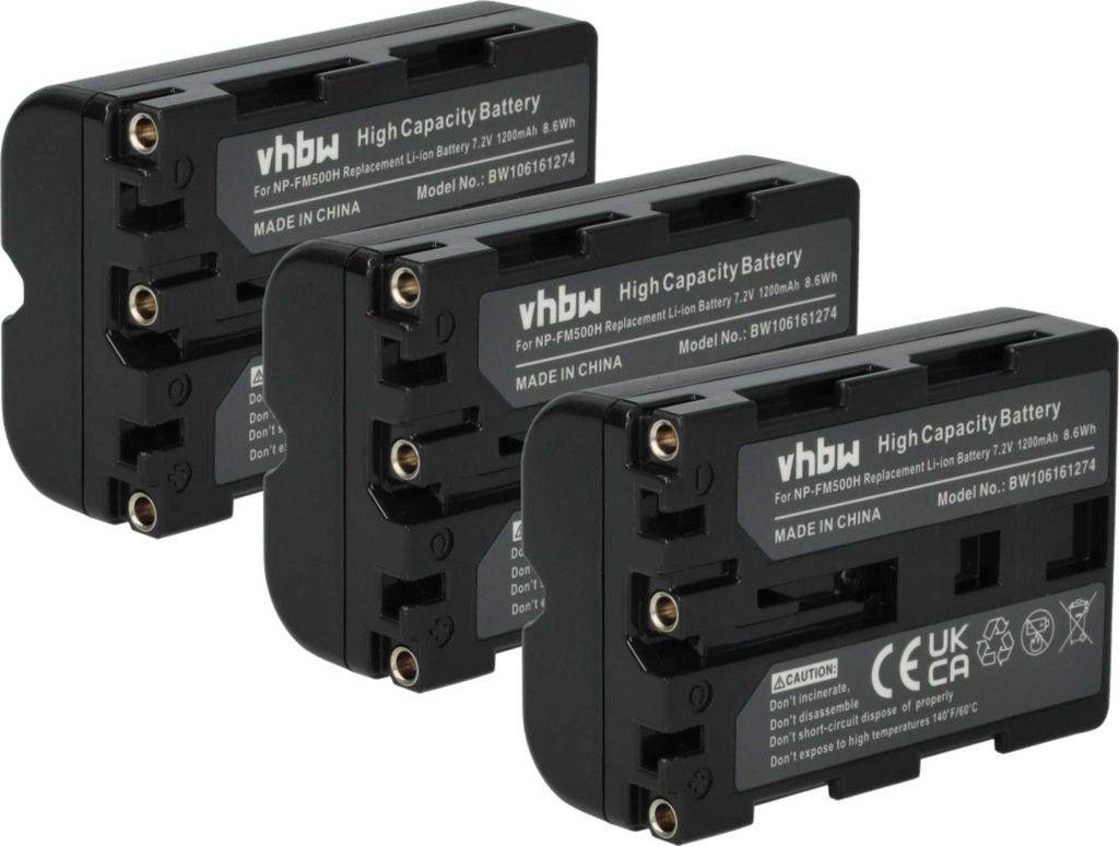 vhbw 3x Akku Ersatz für Sony NP-FM500H für Kamera (1200 mAh, 7,2 V, Li-Ion)