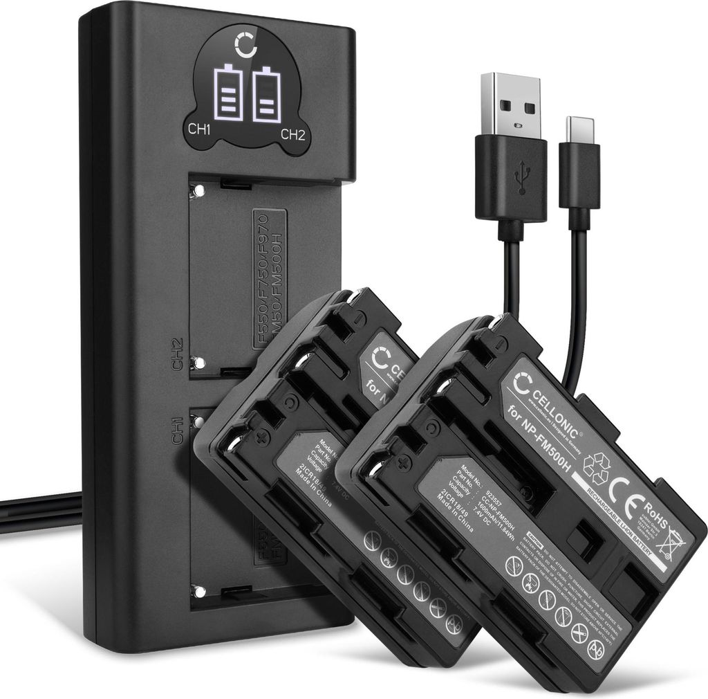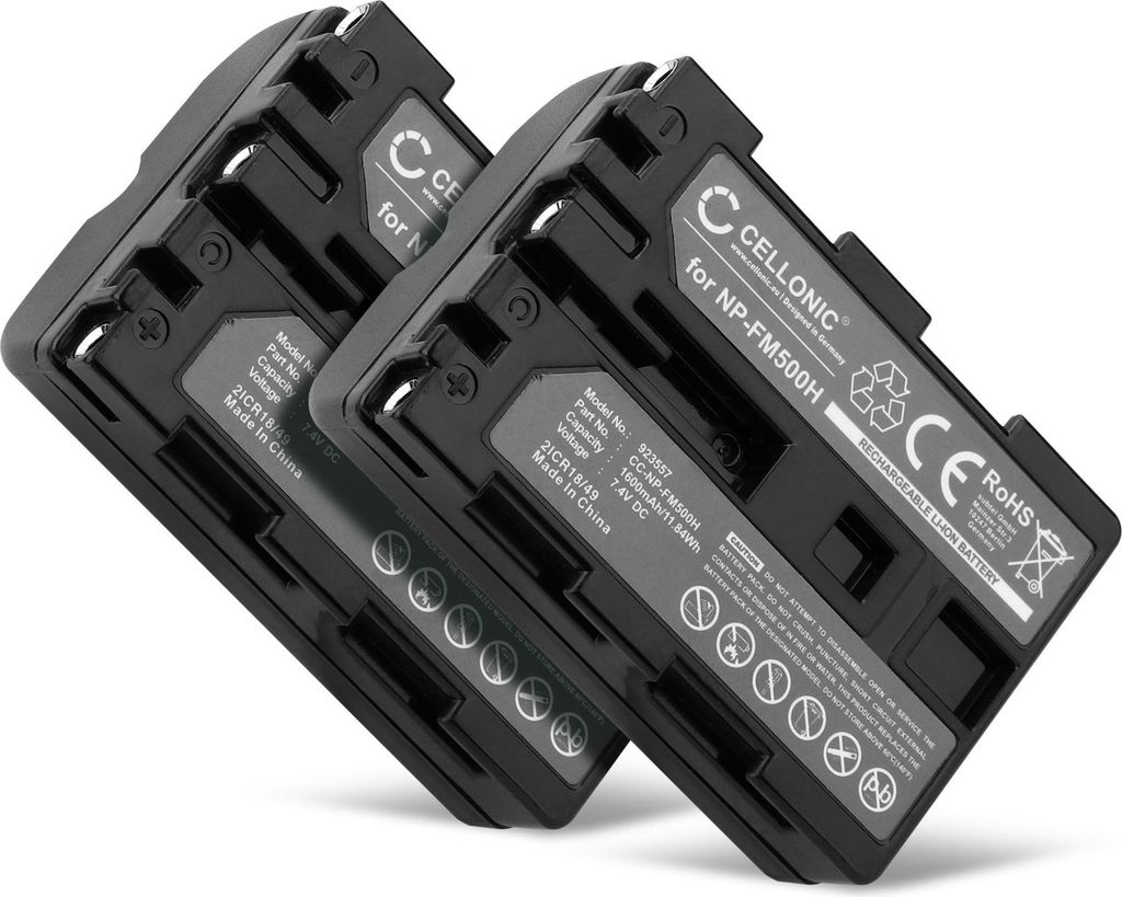 CELLONIC 2x Akku für Kamera Kompatibel mit Sony SLT-A77 (α77), SLT-A77 II (α77 II), DSLR-A300 (α300), NP-FM500H - (1600mAh, 7.4V)