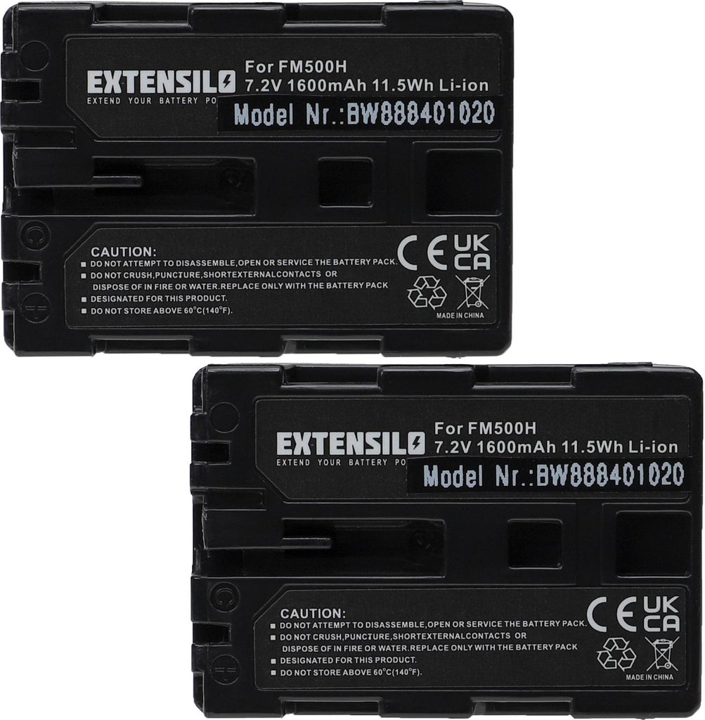 EXTENSILO 2x Akku Ersatz für Sony NP-FM500H für Kamera (1600 mAh, 7,2 V, Li-Ion)