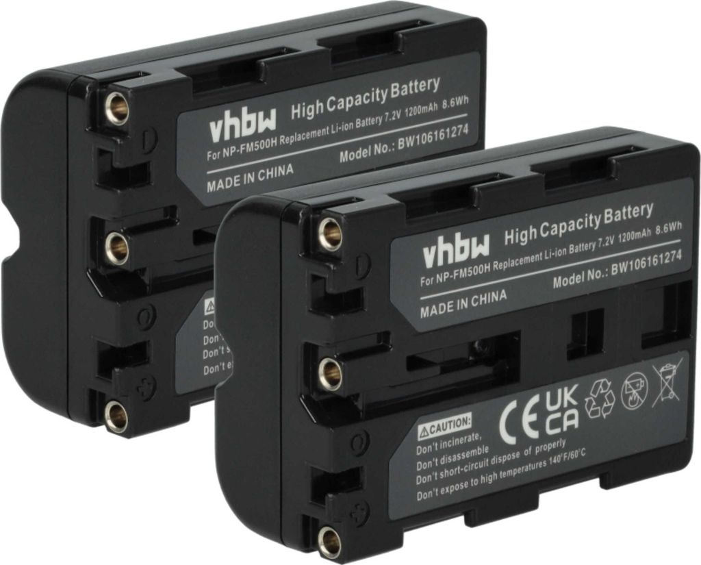 vhbw 2x Akku Ersatz für Sony NP-FM500H für Kamera (1200 mAh, 7,2 V, Li-Ion)