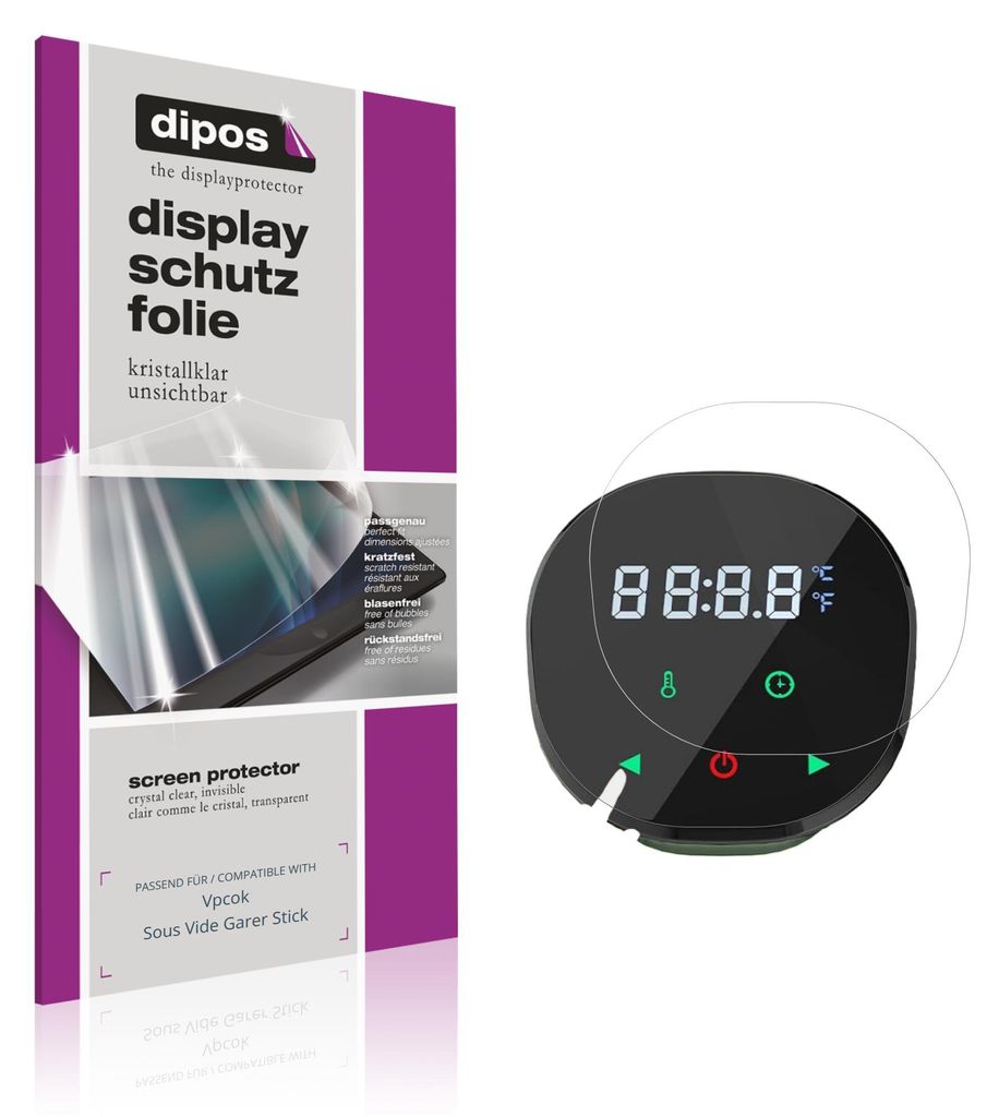 2x Schutzfolie für Vpcok Sous Vide Garer Stick matt - Anti-Shock 9H Folie dipos Glass Kunststoffglas