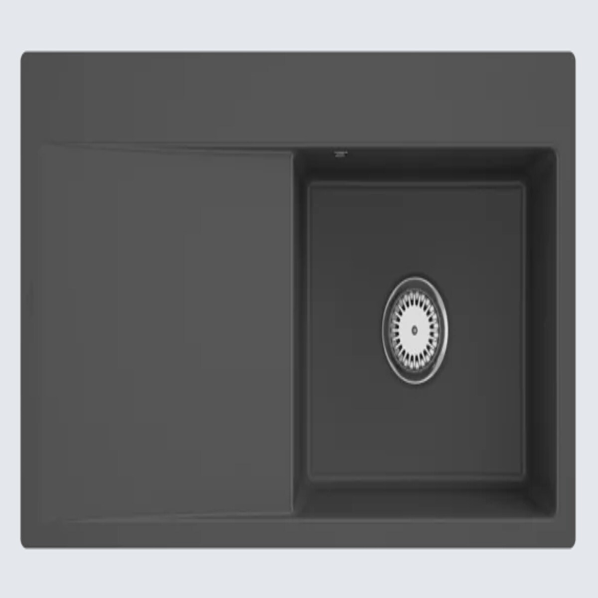 PRIMAGRAN Granitspüle Grau 62x50cm, Spülbecken 1 Becken + Küchenarmatur 32x20cm + Ablauf-Set, Küchenspüle ab 40er Unterschrank - Mailand