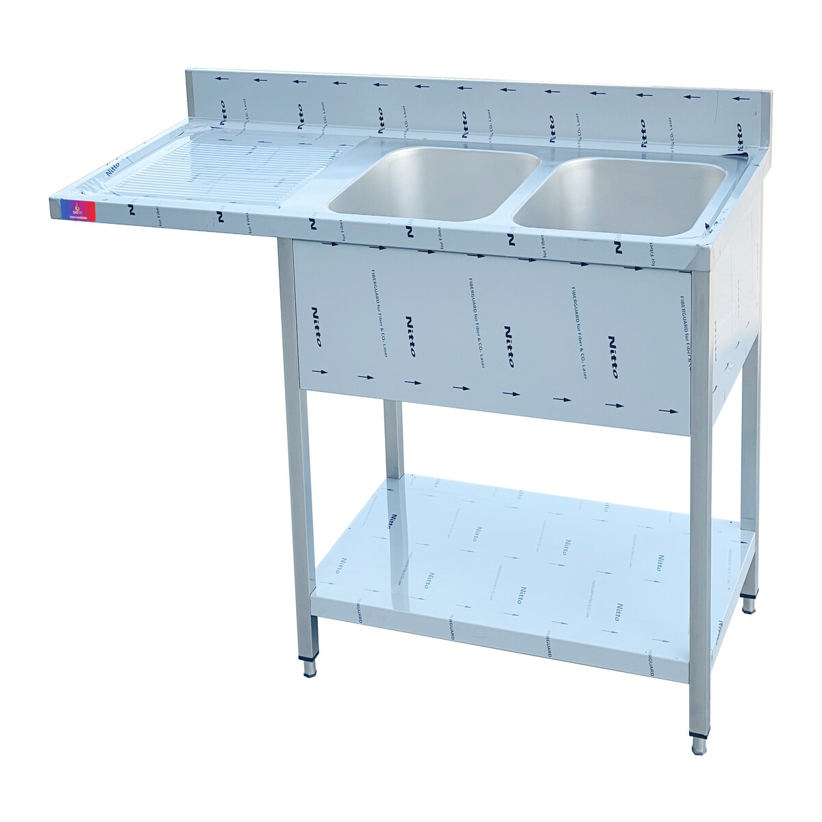 Gasfrit – Spülbecken Industriespüle aus Edelstahl mit 2 Becken, 1 Abtropffläche und Spülmaschinenloch 1600 x 700 x 850 + 100 mm