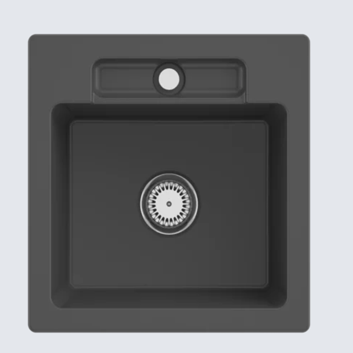 Granitan | GranitSpüle - Spülbecken 1-Becken - 50x40 cm - Rechteckig - Schwarz - mit Chrom Siphon - BEST
