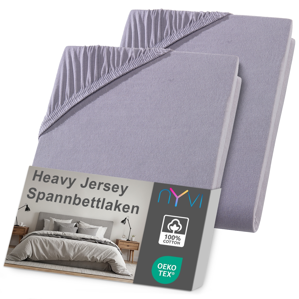NYVI Spannbettlaken DreamScience Heavy Jersey - Spannbetttuch, Formstabil, 160g/m², Rundum-Gummizug, Bügelfrei 120x200 - 130x200 cm (2er Pack) grau