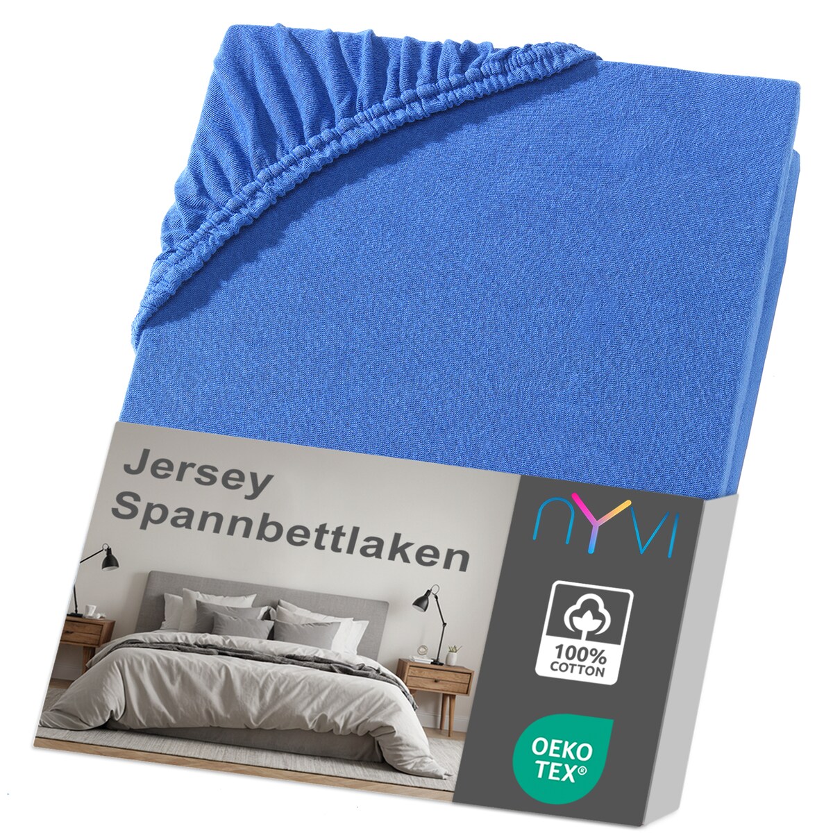 NYVI Jersey Spannbettlaken DreamScience für Matratzen bis 22 cm Höhe - Weich & Anschmiegsam, Rundumgummizug, Bügelfrei 90x200 - 100x200 cm royalblau