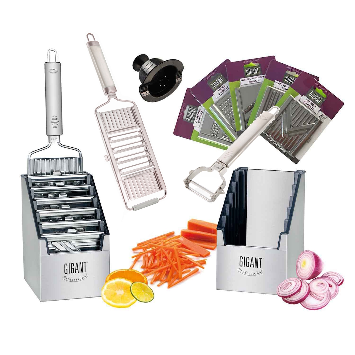 Novabest Gigant 4-fach Gemüsehobel Super Megaset mit Multi-Box 5 weiteren Einsätzen und Sparschäler Edelstahl