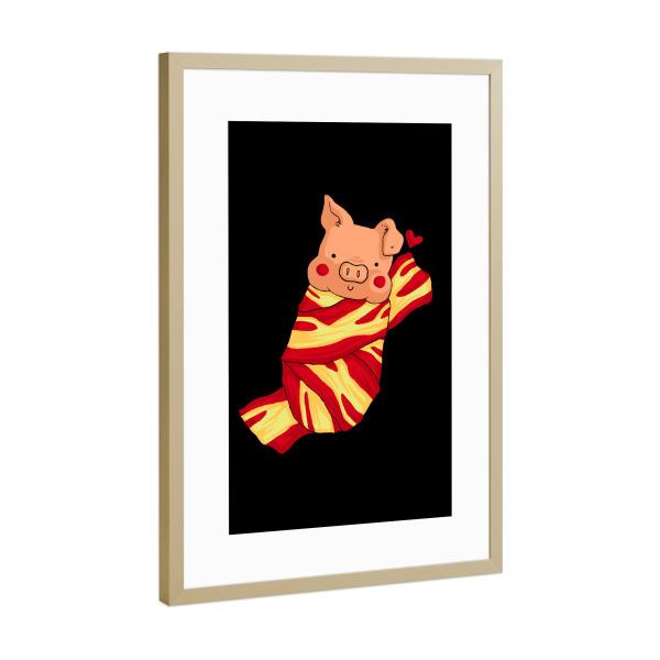 Poster mit Rahmen Gold "Comfie" artboxONE - Tiere - Comfie,Speck,Tiere,Niedlich,Lustig,Cool,Schwein,Schweinchen,Cerdito