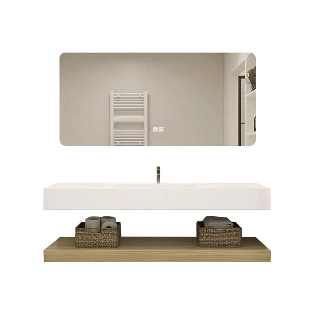 Wandhängendes Badezimmermöbel Set mit Sinterstein Waschbecken, LED Spiegel, Ablagebrett und Ablaufgarnitur 120 × 55 cm【C458-120】