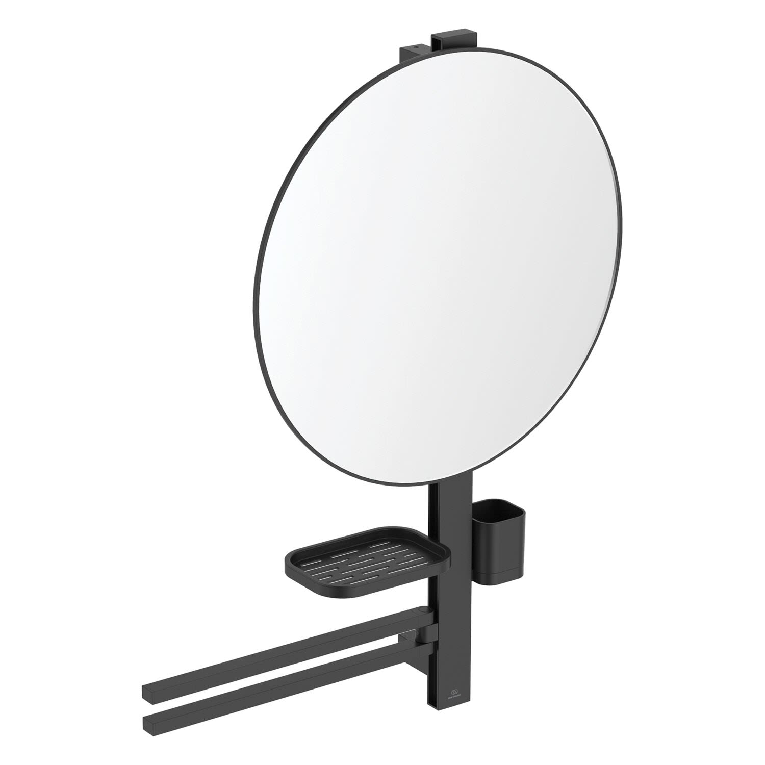 Ideal Standard Beauty Bar Accessoires-Kombination Alu+ L800 mit Spiegel Durchmesser 500mm Silk Black