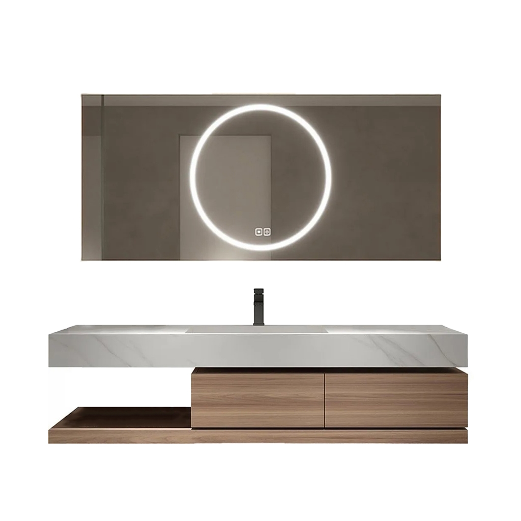 Sinterstein Waschbecken mit Schublade und Ablage – Moderne Waschtischkombination mit LED-Spiegel für das Badezimmer 140*55cm【YT2032-140 K】
