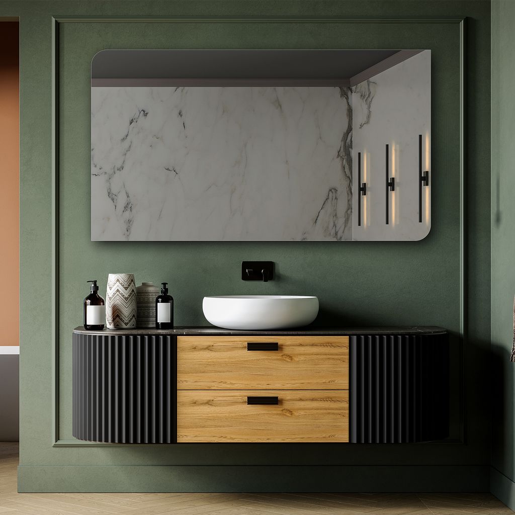 Unregelmäßiger asymmetrischer Spiegel mit LED Beleuchtung 129x84 cm - mit LED Beleuchtung - LED Farbe Kaltweiß 7000K - Individuell Nach Maß - B...