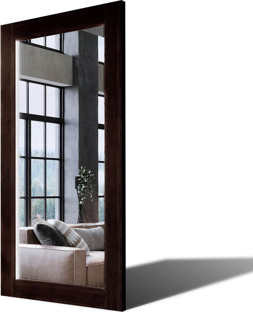 80x190 Rechteckig Rustikale Wandspiegel mit Rahmen massivholz Eichenholz Vertikal | Individuell Spiegel Nach Maß | PLDR224 Oak Brown Glatte Oberfl...