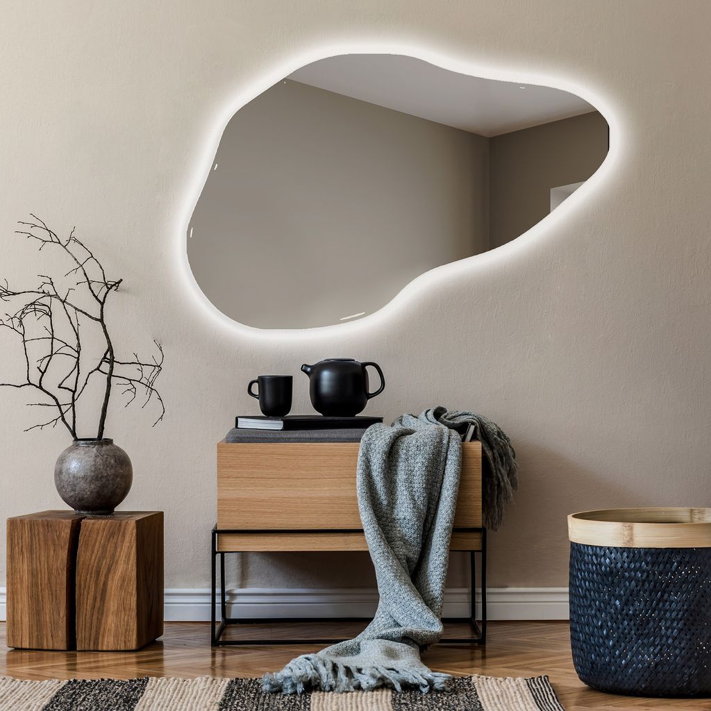 Unregelmäßiger asymmetrischer Spiegel mit LED Beleuchtung 90 x 130 cm - mit LED Beleuchtung - LED Farbe Kaltweiß 7000K - Individuell Nach Maß -...