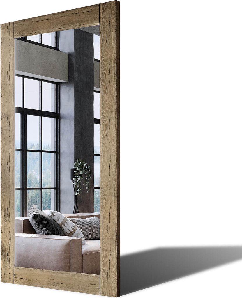 90x190 Rechteckig Rustikale Wandspiegel mit Rahmen massivholz Eichenholz Vertikal | Individuell Spiegel Nach Maß | PLDR224 Oak Ashen Glatte Oberfl...