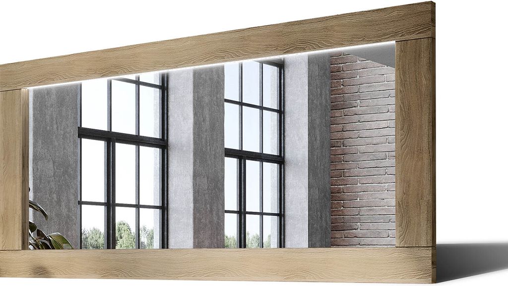 150x70 Rechteckig Rustikal Wandspiegel mit Rahmen massivholz Eichenholz mit Beleuchtung Horizontal | Individuell Spiegel Nach Maß | LDR225 Oak Ash...