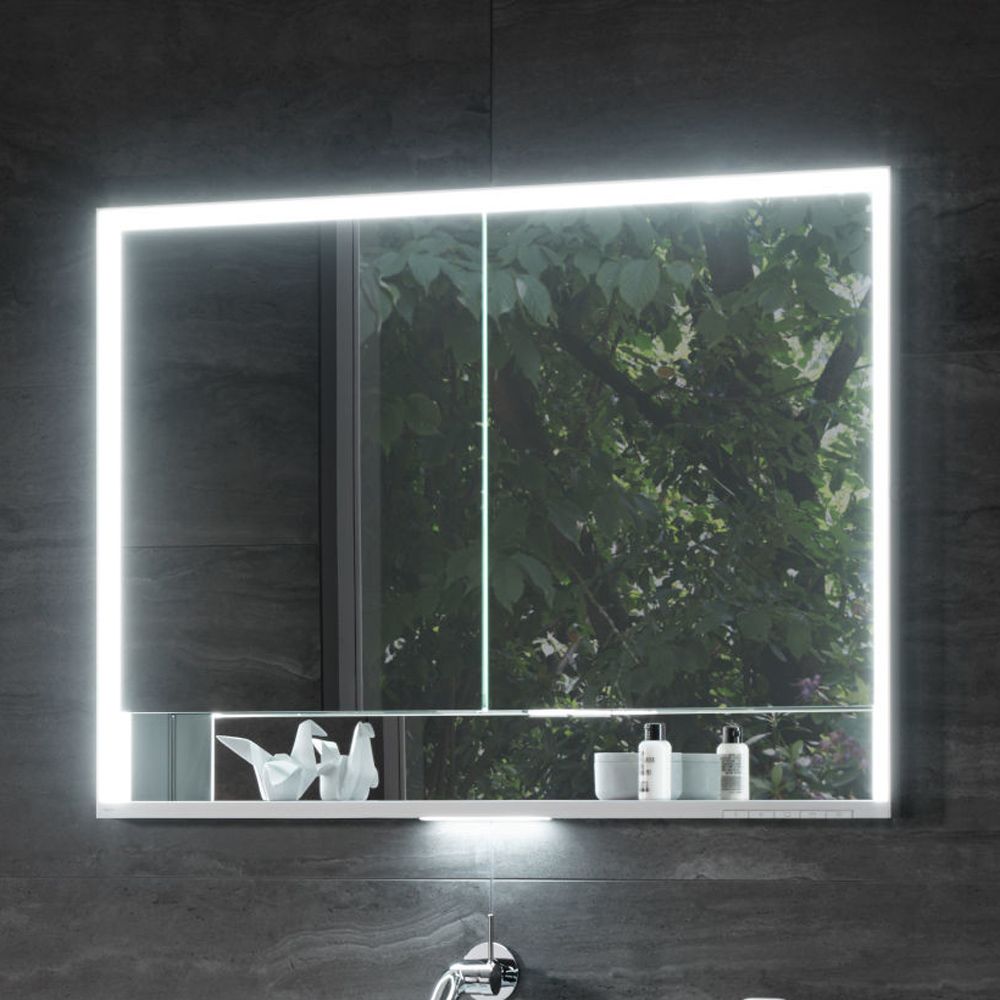 burgbad b:me Spiegelschrank mit LED-Beleuchtung, 100 cm, 2 Spiegeltüren, Badmöbel,