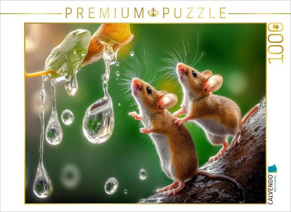 CALVENDO Puzzle Zwei Mäuse beim Regentropfen-Fangen-Spiel | 1000 Teile Lege-Größe 64x48cm Foto-Puzzle für glückliche Stunden