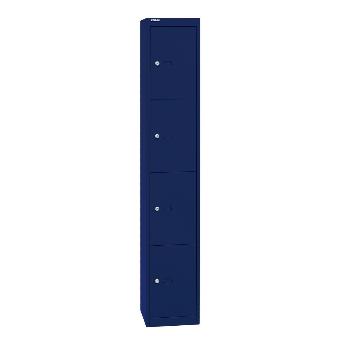 Bisley Garderobenschrank Office mit Schloss aus Stahlblech, 4 Fächer - Spind abschließbar für Sportzeug, Kleidung & Co. - Tiefe: 45,7 cm - Farbe: